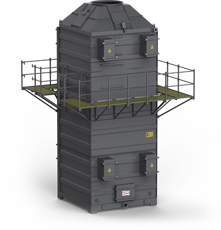 油烟废气进入圆管式静电,在高压电场的作用下,将气体与微小的油烟颗粒进行电离荷电,带电的微小油烟粒子被阳极管吸附,在自身重力的作用下在排污口被收集。